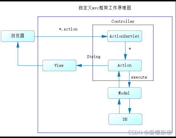 //jsp跳转为/book.action/goods.action/order.action……都会跳转到这个类 @WebServlet("*.action") public class DispatchServlet extends HttpServlet{ //?? ?再当前中央控制器中必然会有所有子控制器的集合 //?? ?缺陷:如果有商品的增删改查-->意味着要改动代码-->代码的设计不够灵活 //?? ?思考:在不改动代码的情况下,中央控制器也能找到对应的子控制器去处理浏览器请求 //?? ?方案:把加子控制器的逻辑/动作,放到配置文件中完成(Dbutil改连接信息是放在代码中完成/现在是放在Properties) //?? ?放在配置文件中完成的好处在于:代码更加灵活,修改相关信息不用动代码 //?? ?private Map<String, ActionSupport> actions=new HashMap<String, ActionSupport>(); //?? ?ConfigModel对象又通过建模的知识,把所有的的配置信息给读取过来 ?? ?private ConfigModel configModel=null;?? ? //?? ?初始化所有的子控制器到当前的中央控制器中 ?? ??? ?public void init() throws ServletException { //?? ??? ??? ?在集合中就有了一个子控制器 //?? ??? ??? ? actions.put("/book", new BookAction()); //?? ??? ??? ? actions.put("/goods", new GoodsAction()); //?? ??? ??? ? …… ?? ??? ??? ? try { ?? ??? ??? ??? ?configModel=ConfigModelFactory.build(); ?? ??? ??? ?} catch (Exception e) { ?? ??? ??? ??? ?// TODO Auto-generated catch block ?? ??? ??? ??? ?e.printStackTrace(); ?? ??? ??? ?} ?? ??? ?} ?? ? ?? ?@Override ?? ?protected void doGet(HttpServletRequest req, HttpServletResponse resp) throws ServletException, IOException { ?? ??? ?doPost(req, resp); ?? ?} ?? ? ?? ?@Override ?? ??? ?protected void doPost(HttpServletRequest req, HttpServletResponse resp) throws ServletException, IOException { //?? ??? ??? ?将子控制器与浏览器请求关联起来,寻找能够处理请求的子控制器 //?? ??? ?如何找到浏览器这个路径:http://localhost:8080/book.action?methodName=add-->BookAction.add(); ?? ??? ?/* ?? ??? ? * 思路 ?? ??? ? * 1.url-->/book ?? ??? ? * 2.通过/book字符串在actions找到BookAction ?? ??? ? * 3.调用BookAction的add,想要调用add,实际上只要统一调用execute就可以了 ?? ??? ? */ //?? ??? ?获取到浏览器的请求地址 ?? ??? ?String url = req.getRequestURI(); //?? ??? ?1.url-->/book ?? ??? ?url=url.substring(url.lastIndexOf("/"), url.lastIndexOf(".")); ?? ??? ? //?? ??? ?2.通过/book字符串在actions找到BookAction //?? ??? ?ActionSupport actrion = actions.get(url); //?? ??? ?原来在Map中寻找子控制器——>现在在配置文件中寻找子控制器 ?? ??? ?/** ?? ??? ? * 思路: ?? ??? ? * 1.通过/book找到对应的ActionModel对象 ?? ??? ? * 2.通过ActionModel对象拿到类的全路径名com.lv.framework.BookAction ?? ??? ? * 3.反射实例化对象 ?? ??? ? */ ?? ??? ?ActionModel actionModel = configModel.pop(url); //?? ??? ?拿到类的全路径名 ?? ??? ?String type = actionModel.getType(); ?? ??? ?ActionSupport action; ?? ??? ?try { ?? ??? ??? ?action = (ActionSupport) Class.forName(type).newInstance(); //?? ??? ??? ?完成实体类参数的封装 ?? ??? ??? ?if(action instanceof ModelDriver) { //?? ??? ??? ??? ?当前子控制器实现了模型驱动接口 ?? ??? ??? ??? ?ModelDriver m=(ModelDriver) action; //?? ??? ??? ??? ?Book/Goods…… ?? ??? ??? ??? ?Object bean=m.getModel(); //?? ??? ??? ??? ?所有的请求参数都在这,需要将所有的请求参数封装到Book/Goods…… ?? ??? ??? ??? ?BeanUtils.populate(bean, req.getParameterMap()); ?? ??? ??? ?} //?? ??? ??? ?执行业务逻辑 BookAction.add方法的返回值"list" ?? ??? ??? ?/** ?? ??? ??? ? * 1、书籍新增那么跳转书籍展示页面BookList.jsp 转发 ?? ??? ??? ? * 2、书籍编辑跳转编辑页面BookEdit.jsp 重定向 ?? ??? ??? ? */ ?? ??? ??? ?String res=action.execute(req, resp); ?? ??? ??? ?ForwardModel forwardModel=actionModel.pop(res); ?? ??? ??? ?String path=forwardModel.getPath(); ?? ??? ??? ?boolean isredirect = forwardModel.isRedirect(); ?? ??? ??? ?if(isredirect) { ?? ??? ??? ??? ?resp.sendRedirect(req.getContextPath()+path); ?? ??? ??? ?}else { ?? ??? ??? ??? ?req.getRequestDispatcher(path).forward(req, resp); ?? ??? ??? ?} ?? ??? ??? ? ?? ??? ?} catch (Exception e) { ?? ??? ??? ?// TODO Auto-generated catch block ?? ??? ??? ?e.printStackTrace(); ?? ??? ?} ? ? ? ? ? ? ? ? }