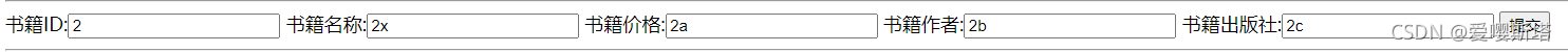 book.setBid(req.getParameter("bid")); book.setBname(req.getParameter("bname")); book.setPrice(req.getParameter("price")); book.setAthor(req.getParameter("athor")); book.setPublish(req.getParameter("publish"));