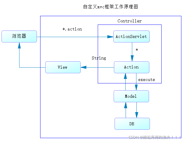 ? ? ? ? ?MVC:①模型层(Model)用来封装 ② 视图层(view)用来显示? ③控制层(controller)? ? ? ? ? ? ? ? ? ? ? 用来接受浏览器请求来处理的