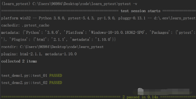命令行输入:pytest -v