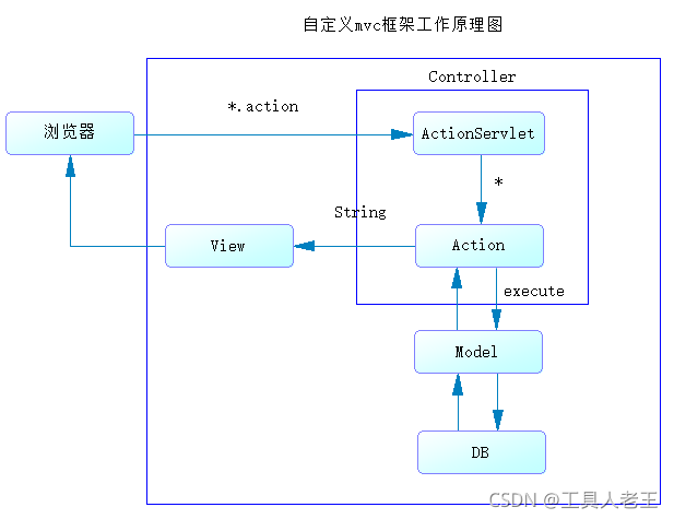实现Action 重写execte方法 ,通过反射获取对应方法(处理所有请求)