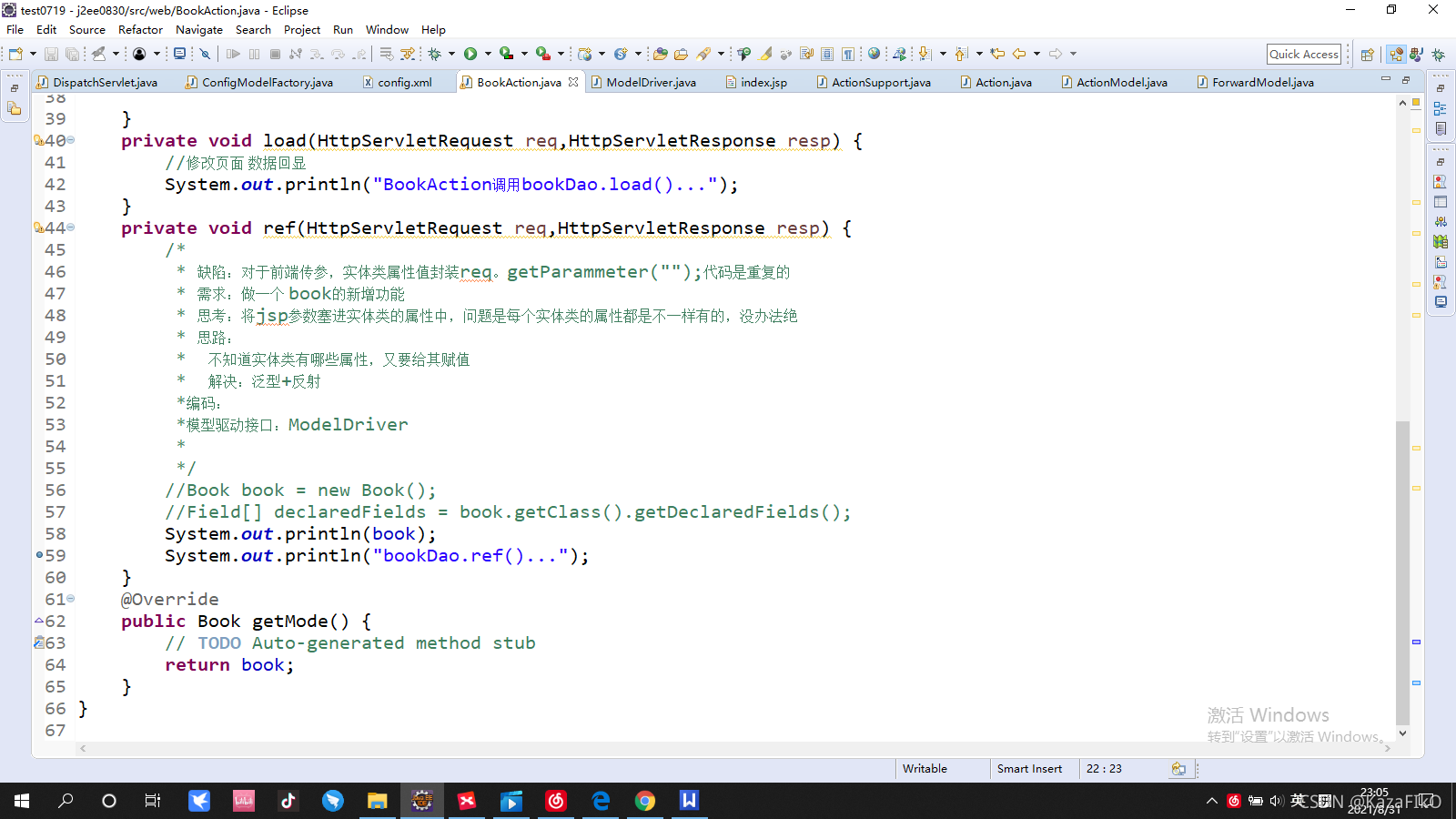 ?? ??? ???ActionSupport ?action = (ActionSupport) Class.forName(type).newInstance(); //实例化? ?? ??? ??? ?if(action instanceof ModelDriver) { ?//判断action是否继承ModelDriver接口 ?? ??? ??? ??? ?ModelDriver m = (ModelDriver) action; ?? ??? ??? ??? ?Object obj = m.getMode(); //拿到对象 //?? ??? ??? ??? ?有对象就接收所有的前端JSP传递到后台的参数 ?? ??? ??? ??? ?Map<String, String[]> parameterMap = req.getParameterMap(); //?? ??? ??? ??? ?对 obj对象 赋值 ?? ??? ??? ??? ?BeanUtils.populate(obj, parameterMap);//把所有的参数赋值给obj对象 ?? ??? ??? ?}