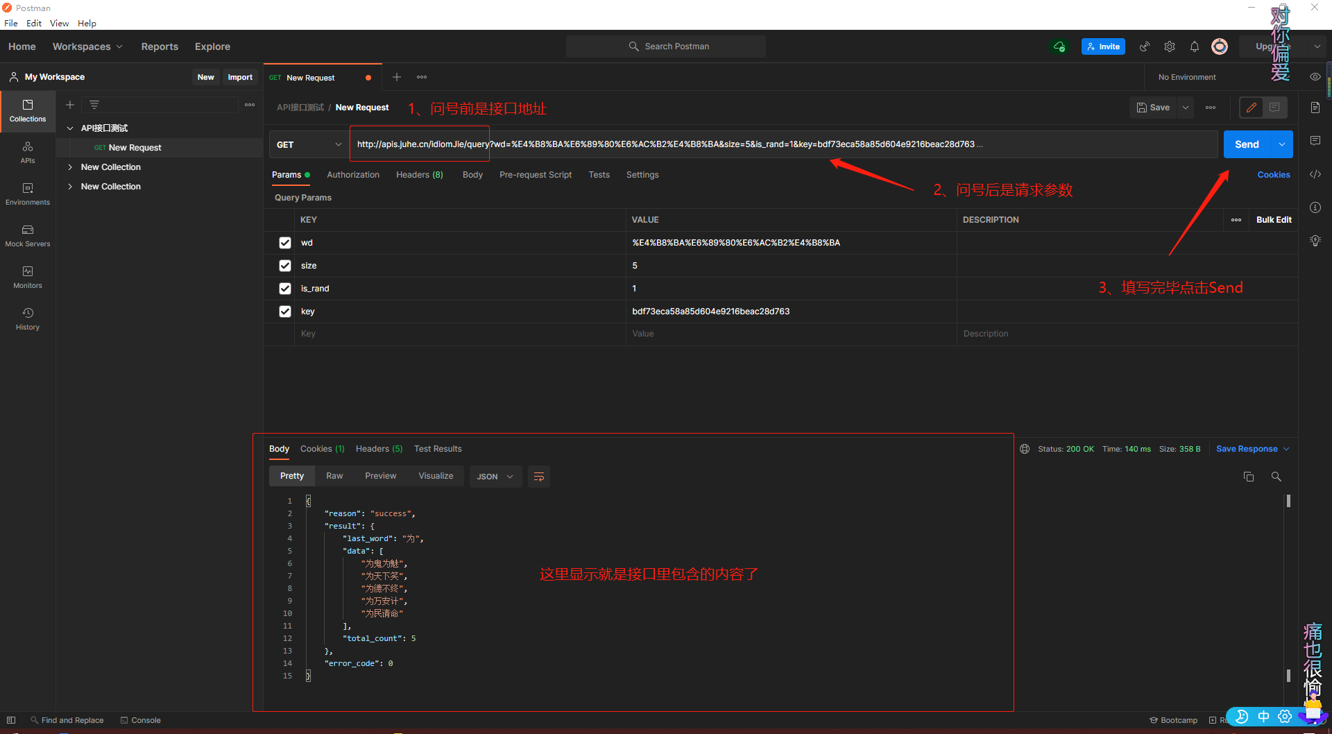 ? 7、下一步我就跟大家说一下如何操作吧! ? ? ? 在输入框中填写:接口地址、请求参数 ? ? ? 格式:接口地址?请求参数(中间的问号能去掉)。详细如图7所示界面 ?