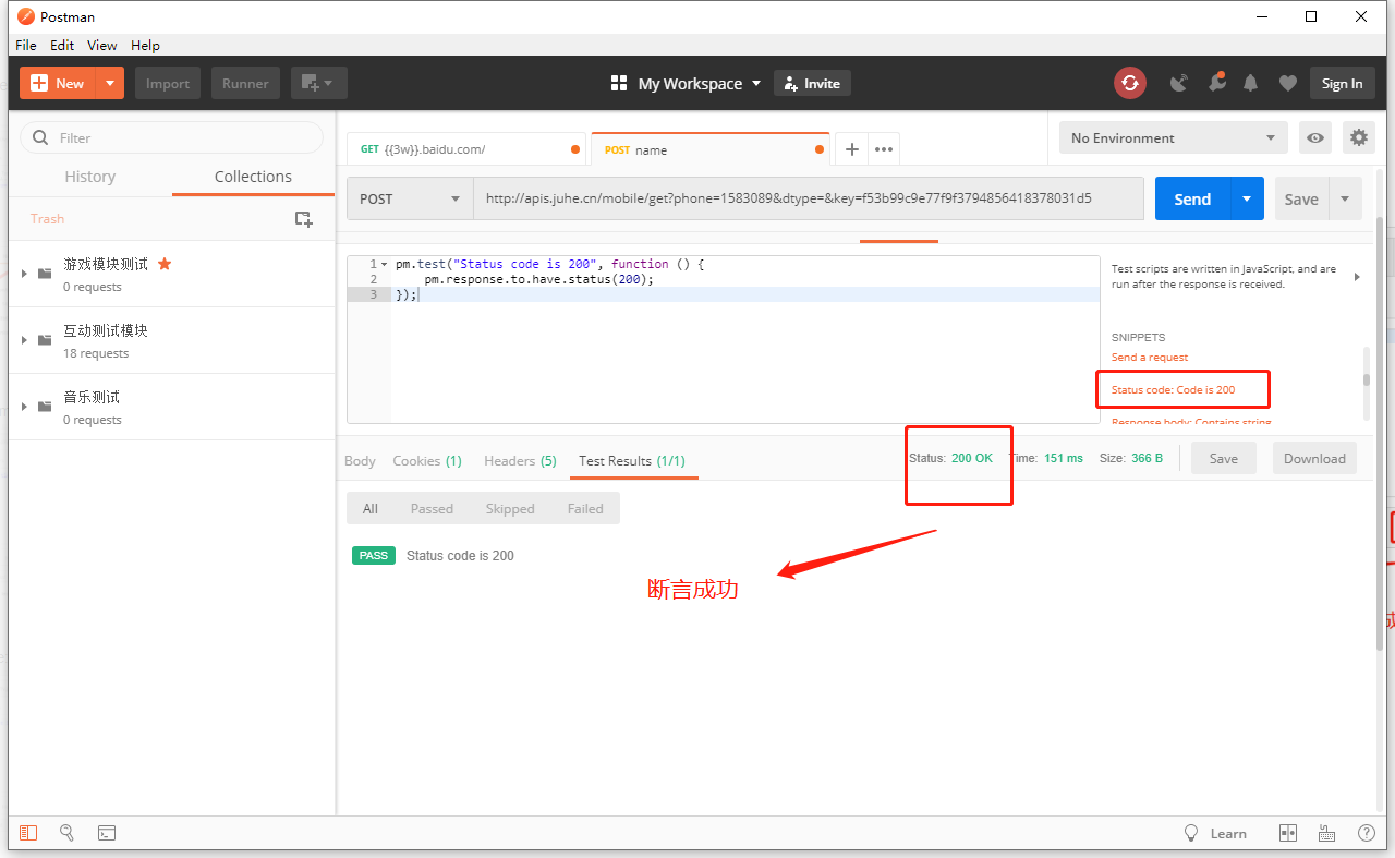 5.Status code:code is 200