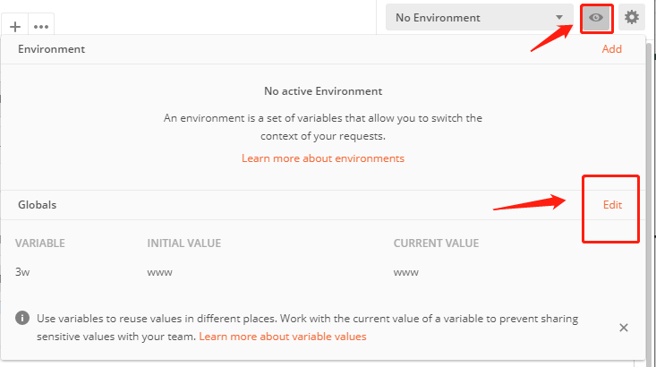 (2).提取公共 www 点击环境按钮,选择全局编辑