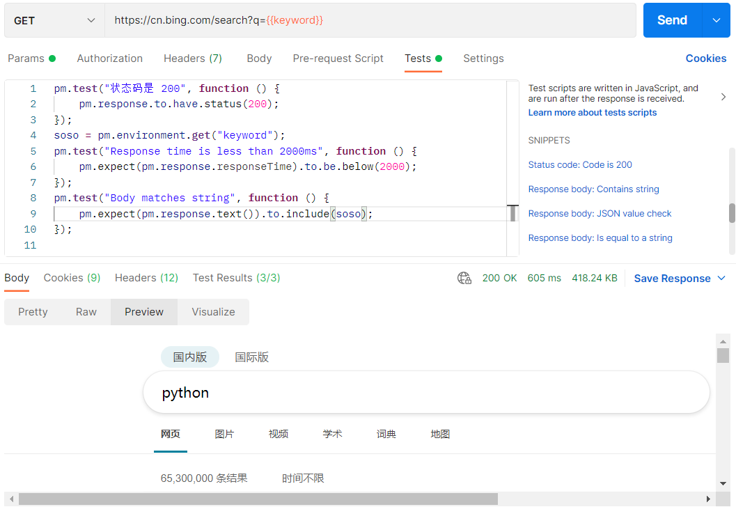 使用postman进行自动化,数据驱动,使用csv文件,postman读取这个数据用例,读到postman变量中,断言测试部分也要使用变量。