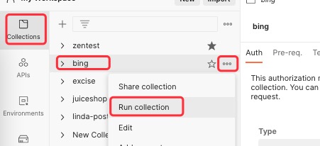 3、点击文件夹,collection,选择bing,三个点,运行