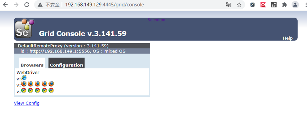 在浏览器中查看grid控制台: http://192.168.149.129:4445/grid/console