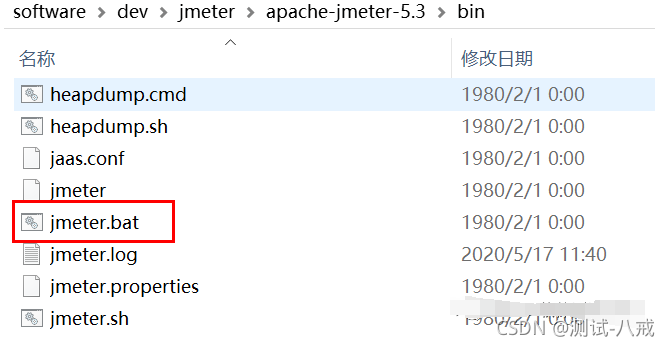 ?④配置完后,确定即可。依次点击bin ->jmeter.bat ,启动Jmeter程序。