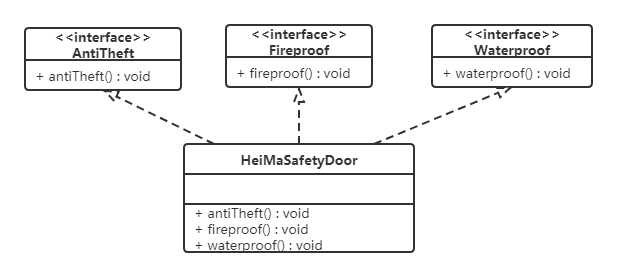 public class HeiMaSafetyDoor implements AntiTheft,Fireproof,Waterproof {
