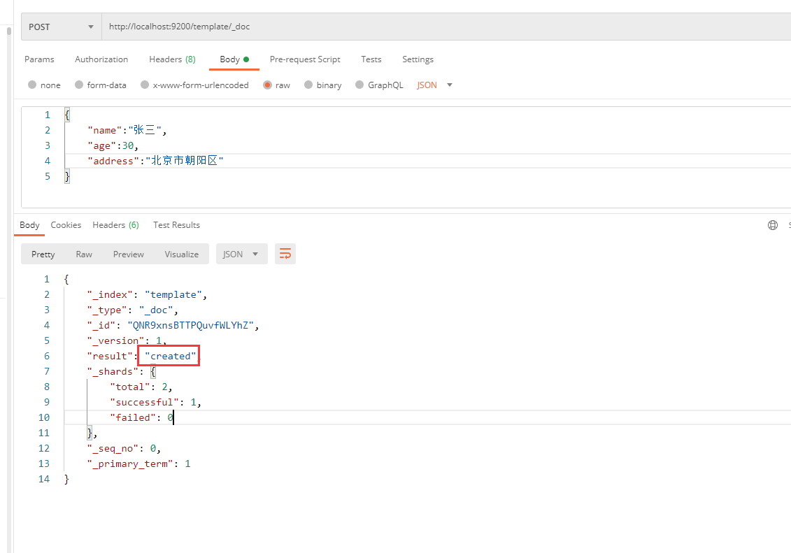 请求方式:post,请求地址: http://localhost:9200/template/_doc/1000 或者 http://localhost:9200/template/_create/1000 1000 就表示固定id