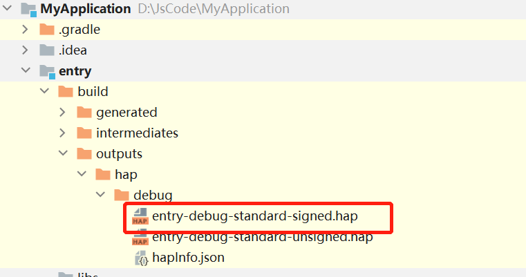 ? ? ? ? 1.首先在IDE里的导航栏点击build->Build Hap->Build Hap这里,将会编译出一个hap包