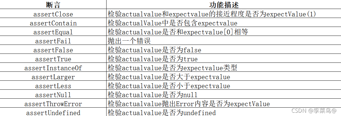????????测试用例采用jasmine的标准语法,describe代表一个测试套,it代表一条用例,describe支持多层嵌套。