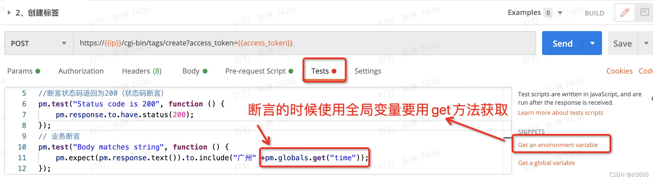 第一步:在Pre-request Script中设置对应的变量(请求前的操作)