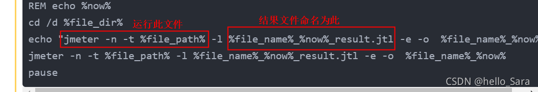 echo "jmeter -n -t %file_path% -l %file_name%_%now%_result.jtl -e -o %file_name%_%now%"