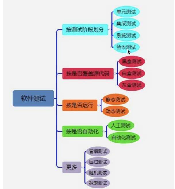1.是为了发现程序中存在的错误而执行程序; 2.是为了证明程序有错,而不是证明程序无错误。 软件测试分类: