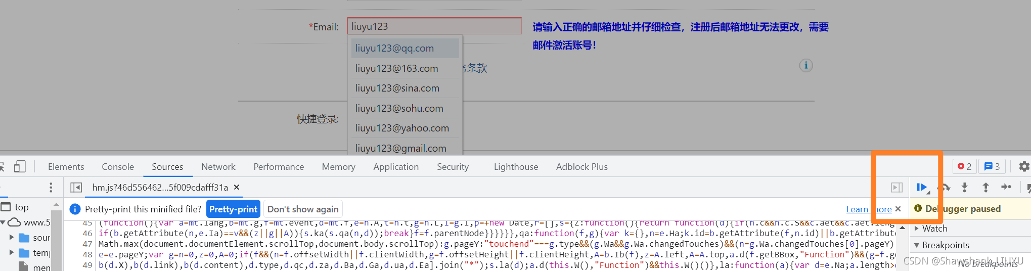最重要的一个技巧是 pause,即把页面暂停,再获取我们的列表框