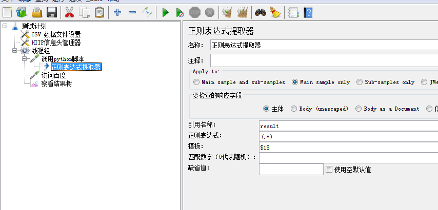 实例:通过csv文件传入多个参数到jython中,jython执行代码后返回一个列表,通过正则表达式提取对应返回值并使用返回值访问百度;