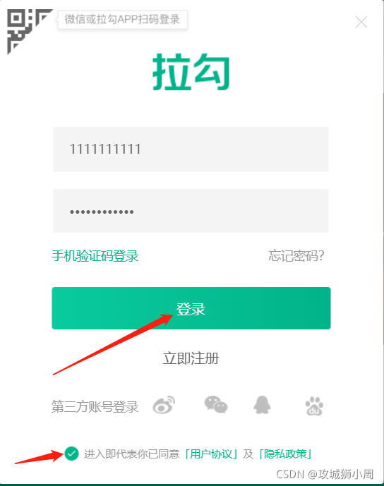 web.find_element_by_xpath('//div[@class="login-checked"]').click()