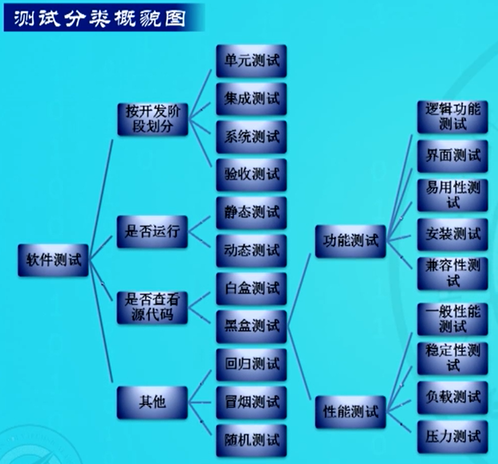 功能测试,性能测试,安装测试,兼容性测试、负载测试、压力测试