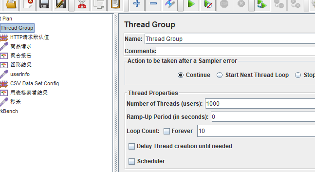 1.创建线程组,在线程组中设置线程的个数、持续时间和循环次数,如