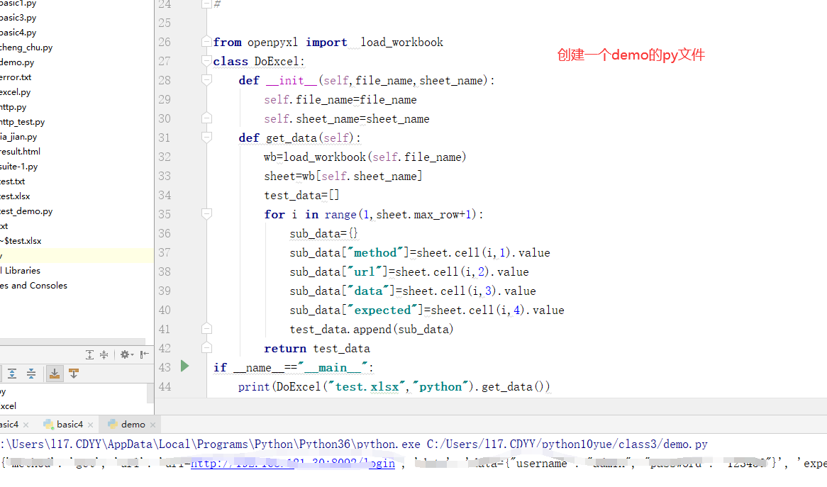 再新建一个py文件引用 ? ? ------------------------------------------------------------------------------------------------------------------------------------------------------------------------------------------------------------------------------------------------------------------ 总结下前面两篇excel的知识: 把数据存到Excel里面去,通过Python去操作Excel。 openpyxl只支持.xlsx这种格式 if __name__ == main: 下的代码只有在本文件直接执行时才会被执行,而 import 到其他脚本中是不会执行该函数下的内容 如果安装了第三方模块,不能以该名字命名py文件,所有的py文件命名要和关键字隔开
