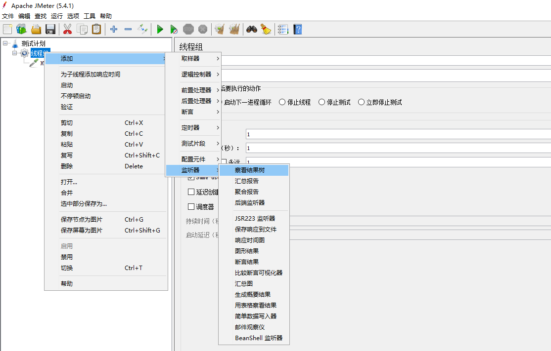 1.添加一个单接口测试 右键测试计划>添加>线程>线程组