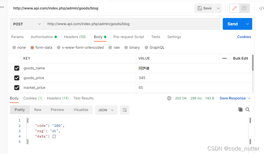 用postMan进行测试? ?http://www.api.com/index.php/admin/goods/blog