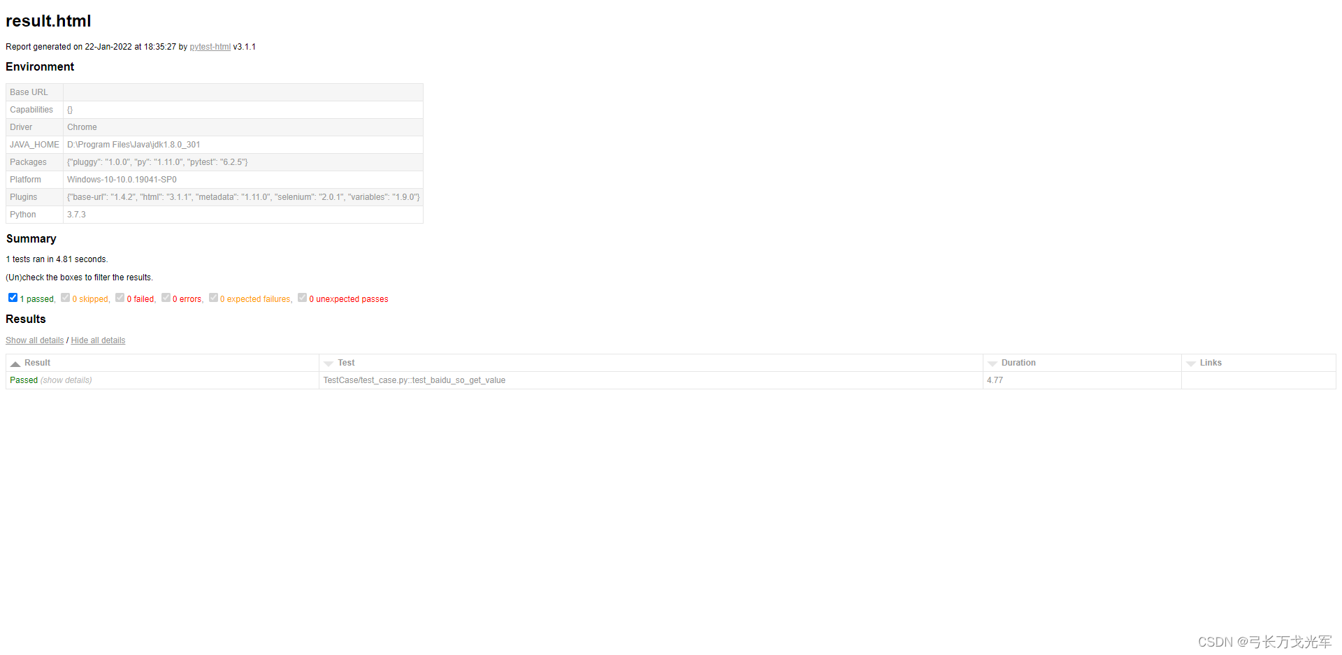 pytest TestCase/test_case.py --driver Chrome --html=report/result.html