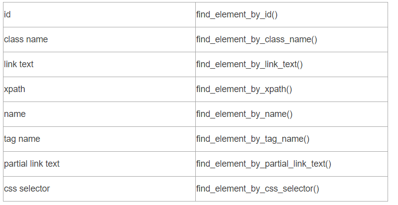 定位一个元素 webdriver提供了八种元素定位的方法,在python中,对应的方法就是: