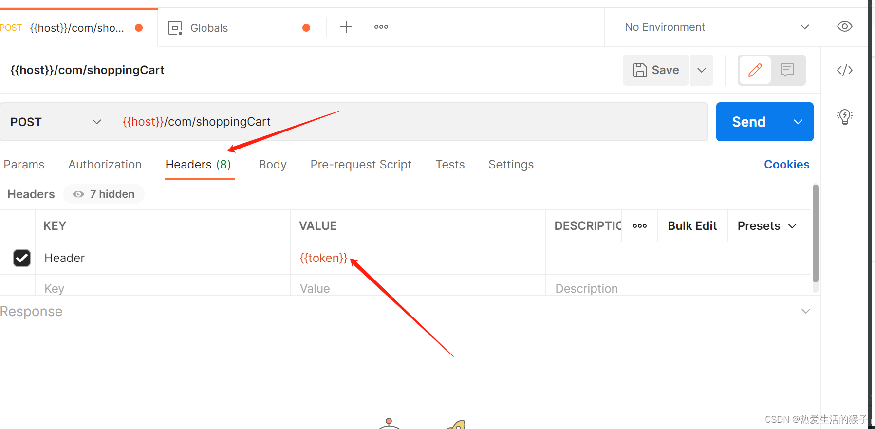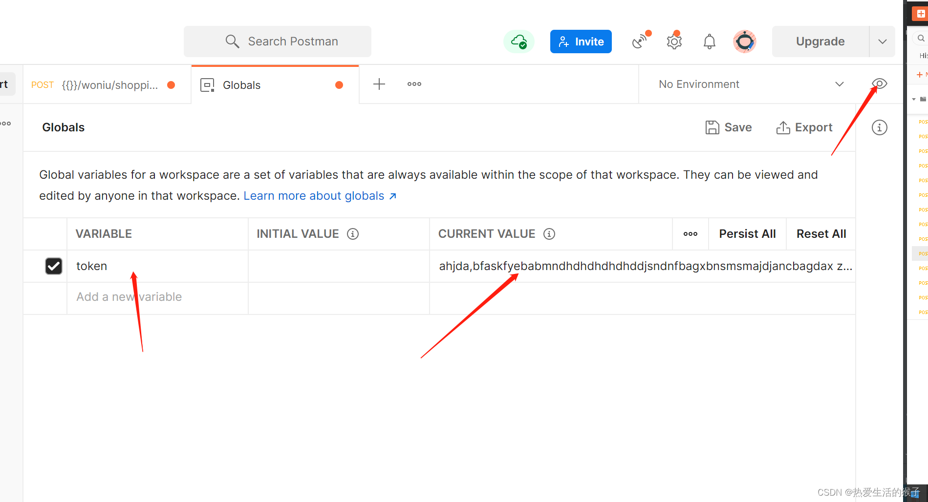?1、此时点击send会自动创建全局变量token,点击右上角的那个“眼睛”查看: