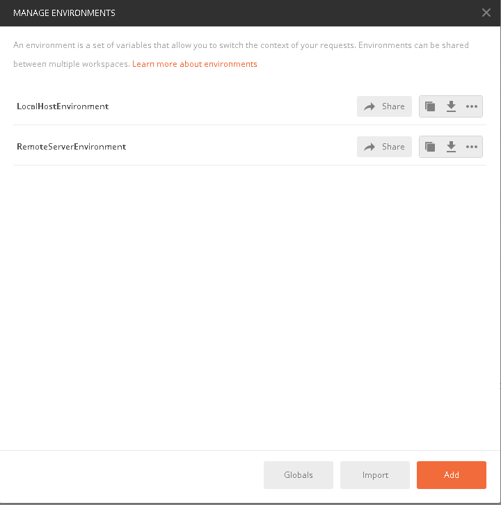 1、点击右上角的设置按钮,进入MANAGE ENVIRONMENTS: