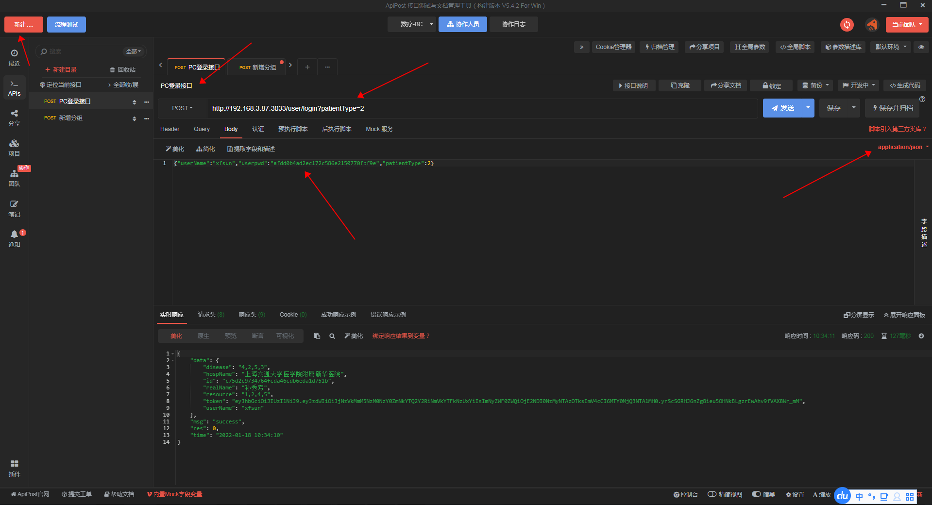 post请求(已数疗服务平台登录—新增分组为例)