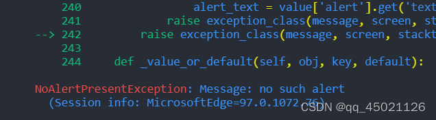 ? 然而报错了,于是又去找no such alert的相关问题,alert还未加载出来导致报错,增加延迟就能解决。然而我尝试了一下,还是报错。 我又去找了下别的带有alert的网页,写了个简单的网页以及程序去跑,发现是能成功的