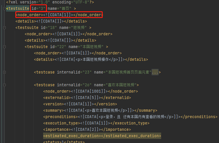 在testlink平台写几条测试用例后导出,然后观察xml文件内容