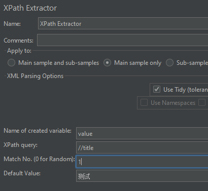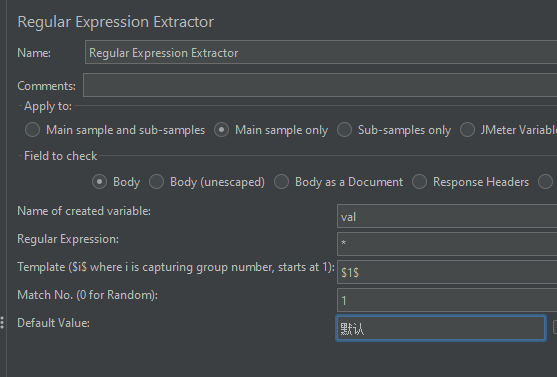 第一个参数是将提取到的结果赋值该什么变量,自定义变量名