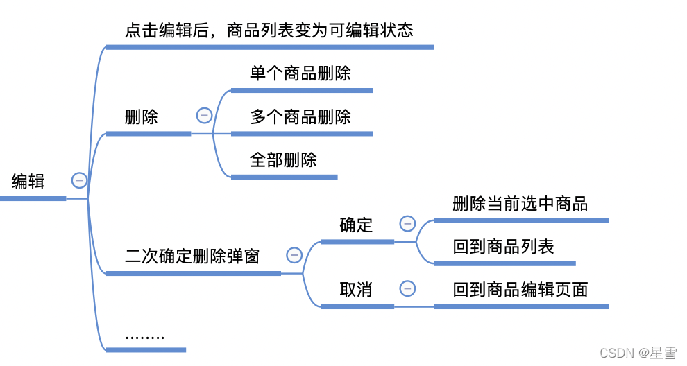 ? ?????????对比上面两个用例,明显的区别是第一版里面是把需求做了拆分,转换了一下展示格式,第二版里面就是拆分需求后,有哪些需要测试的点,这样就清晰了很多。 原则四:站在用户角度不等于放弃业务????????测试届有个烂熟于心的一句话:测试要站在用户角度。这句话本身没有错,也启发了很多的测试人,同样也害了不少测试人。我带的实习生,他们很多告诉我不是要站在用户角度上思考吗,这样思考我觉得用户怎么怎么样,每当这个时候我会问:你能站在多少用户的角度上?大多数时候,说是站在用户角度,其实是根据是个人的使用习惯上,你的使用习惯可能代表了1000个用户,甚至10000个用户,但是你代表不了上百万的用户,我们也没有精力和能力去真正思考这些用户的角度,所以站在用户角度并不等于就考虑用户,还是要从业务出发,考虑它的合理性和复杂性,比如一个跳转就可以支付,让用户跳转三次才到结算台页面,显然不合理,在用例设计过程中我们也会遇到这种需求不合适的地方,或许会有更好的实现方式,那么也可以通过体验建议的方式提给产品,这才是真正的用户角度。 原则五:测试点不等于测试步骤????????尤其是在xmind上写时,不要好多行都在说一个测试点,肯定是一行一个测试点,最多保持3列左右,不要超过5列。记住使用xmind的目的是轻便、鲜明 ,不是在写测试步骤,是在写测试点,作为一个测试角色,有哪些点是需要思考的,如果要写测试步骤,那大可不必在这上面写,或许“禅道”更合适,而且也不允许我们有这么多的时间去花在步骤上,是体现在覆盖率上。还是拿购物车举个例子,购物车列表的编辑操作: