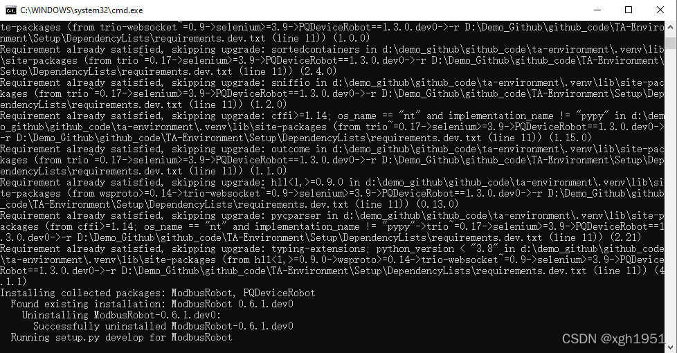 使用框架前需要先构筑环境,运行Setup/Setup-Dev-Environment.bat,此命令会自动下载第三方的模块和库并且安装至.venv的虚拟环境中;会将RF的全局变量写入RIDE中,这样工具打开即用。为什么用虚拟环境以及用虚拟环境的好处此处不多做赘述,大家自行百度python虚拟环境相关知识。