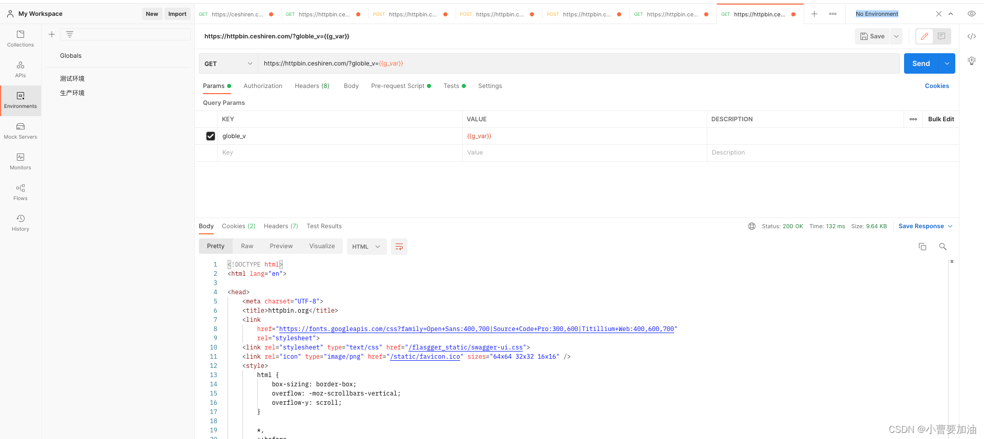 postman 只可以设置一组全局变量, 作用于整个 postman.   -