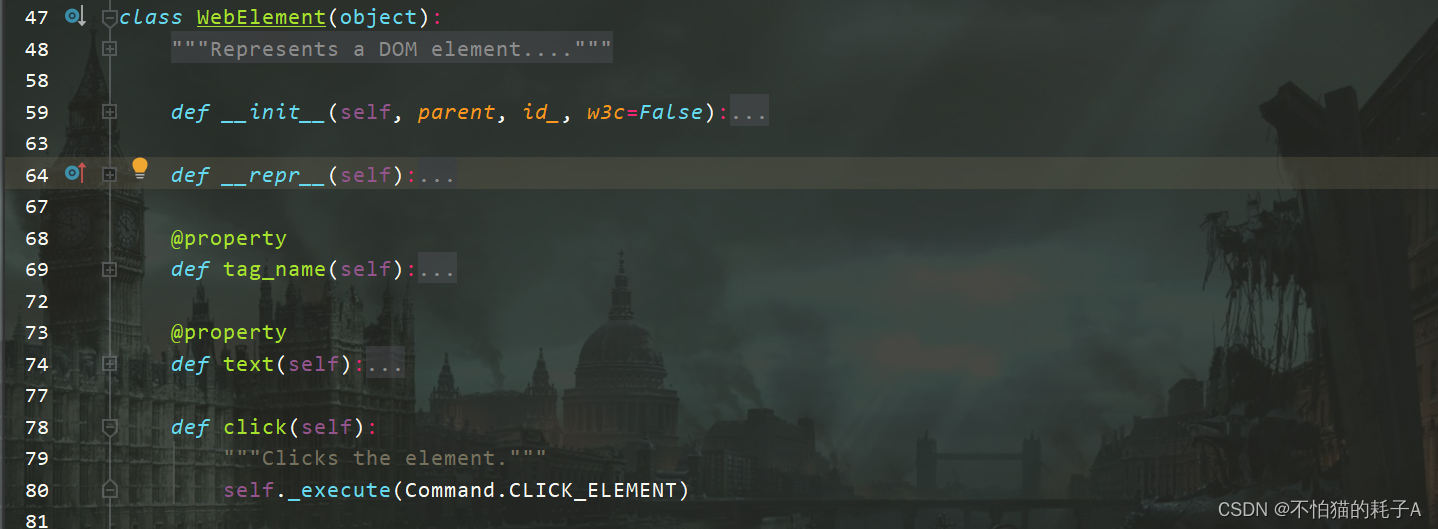 1、方法:WebElement对象.click() ?? ?①该方法属于WebElement类,是WebElement对象下的一个方法,不需要传入参数 ?? ?⑵find_element_by_*等方法返回值是一个WebElement对象,可以直接对WebElement对象使用该方法进行左键点击操作