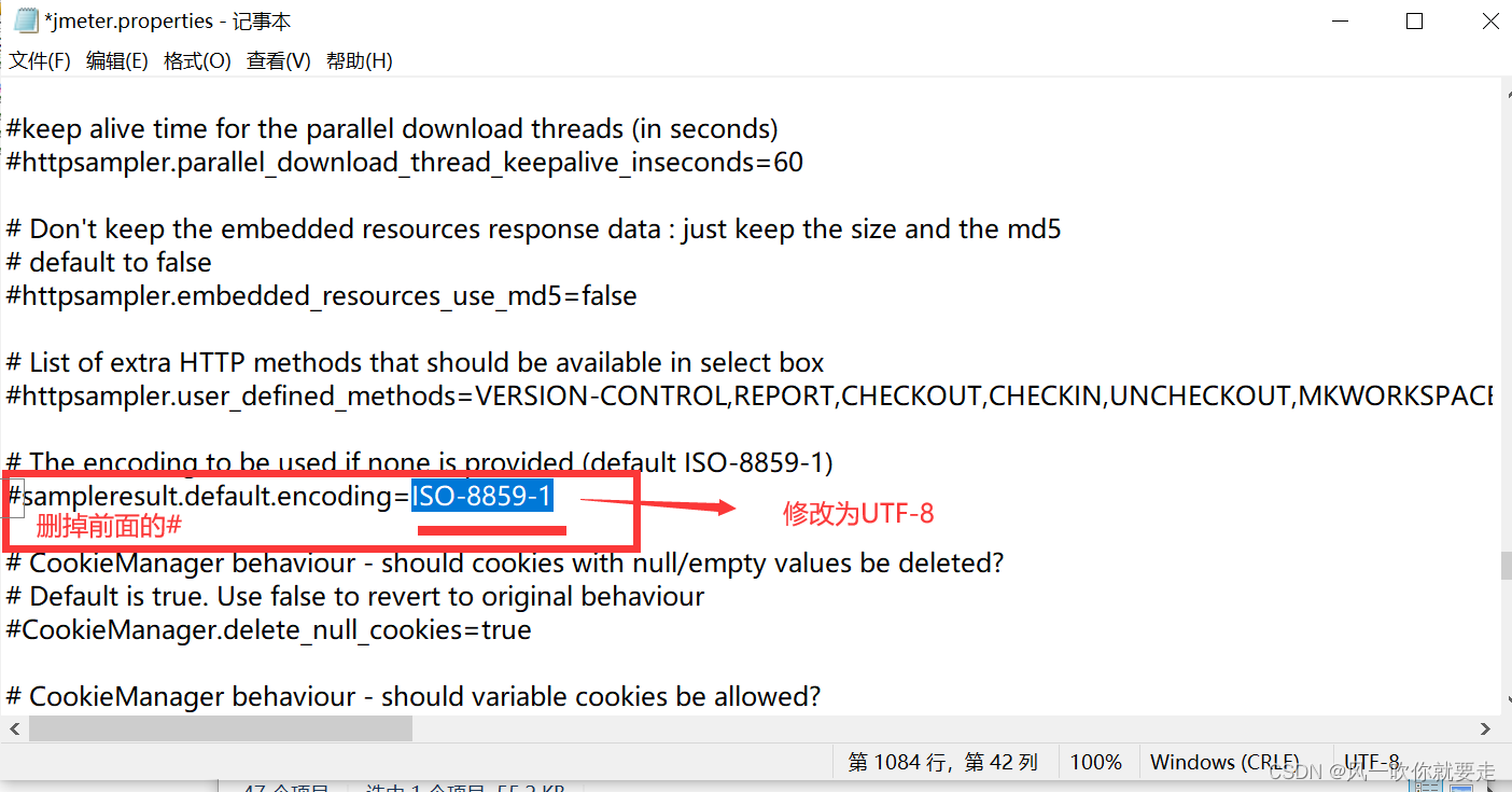 ?如果响应数据内容乱码,可以在配置文件jmeter.properties中进行修改。