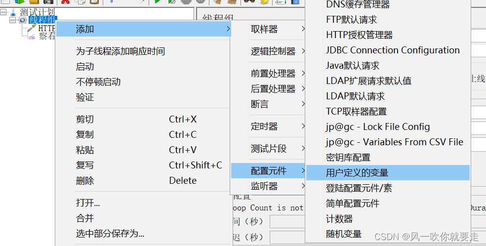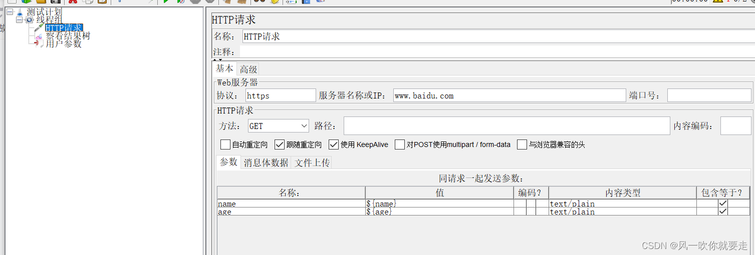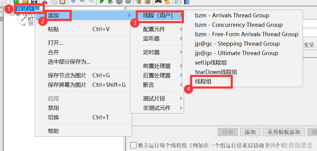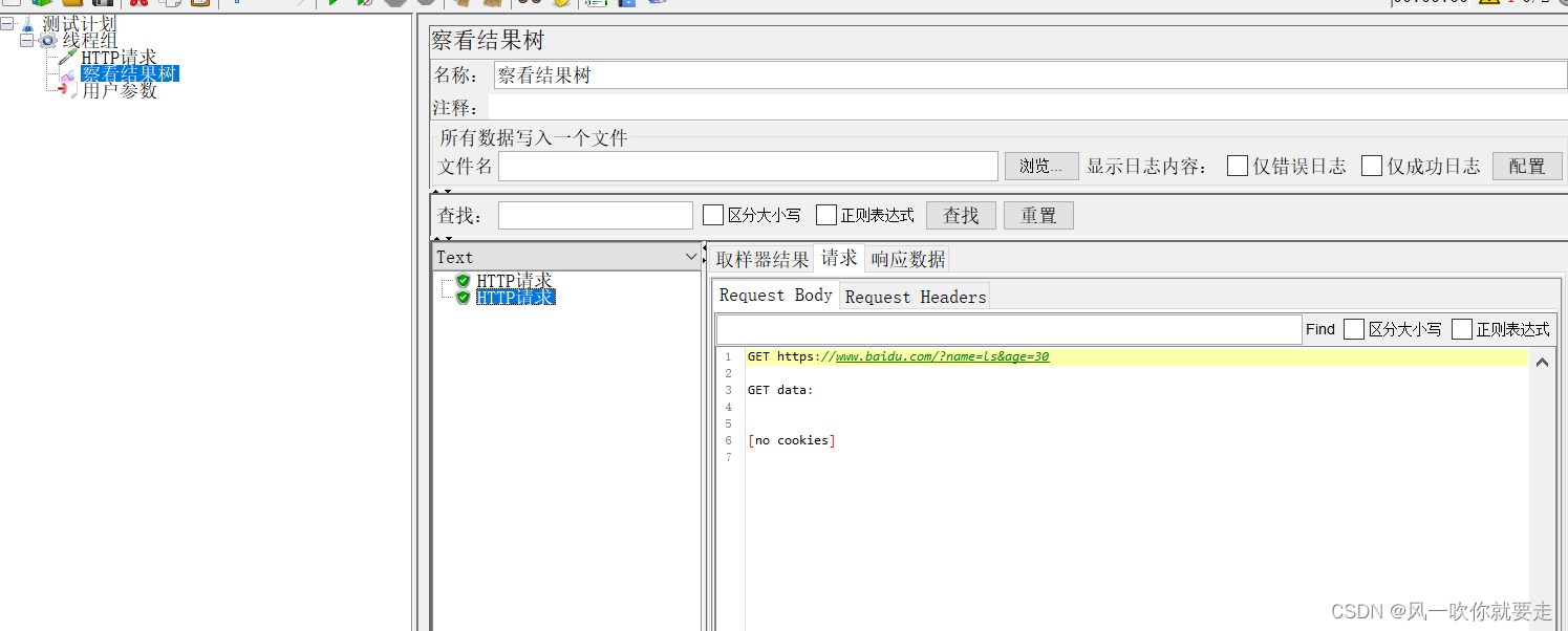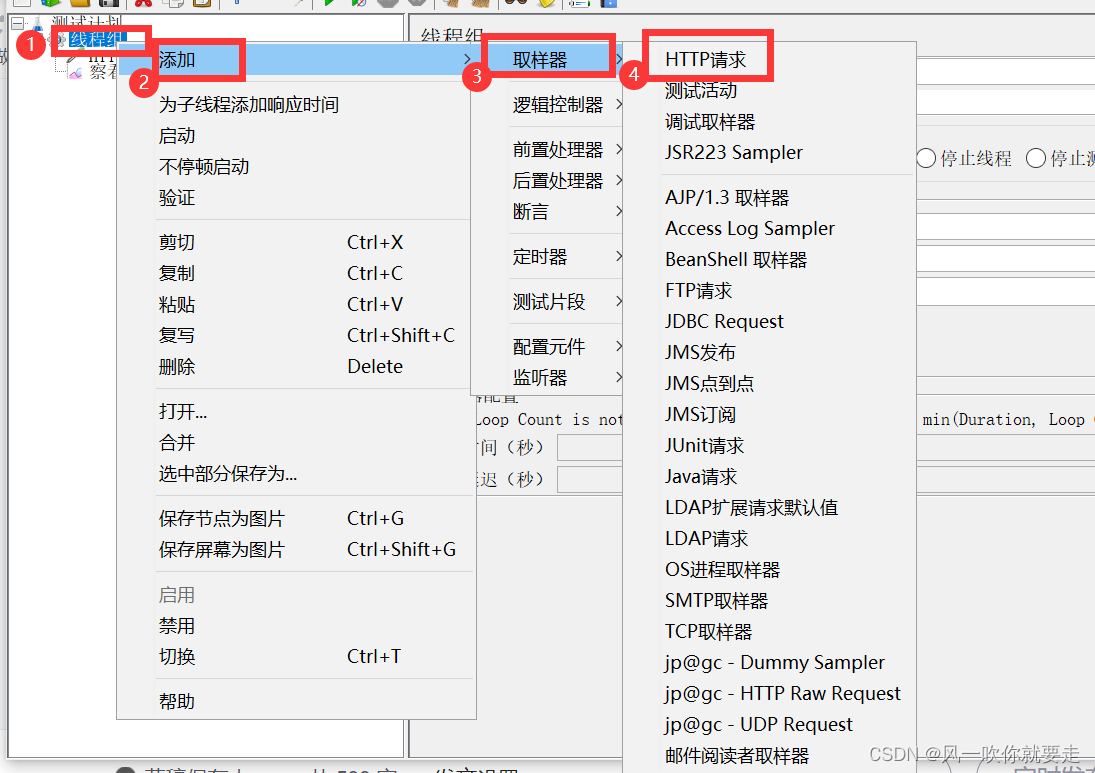 ?②在线程组上右击选择一个HTTP请求 和一个察看结果树