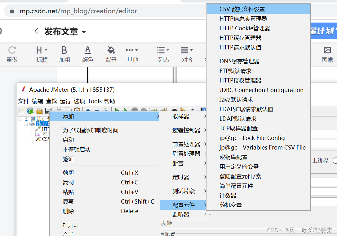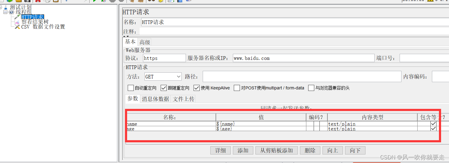 在一个或多个用户来访问多次循环时,想要获取到的值不同,选择CSV数据文件参数化。