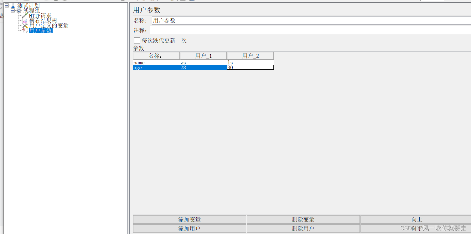 在用户参数中添加两个用户zs和ls,两个参数name和age?