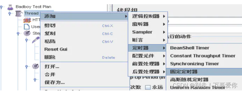 这个就是我们通常添加运行的线程。通俗的讲一个线程组,可以看做一个虚拟用户组,线程组中的每个线程都可以理解为一个虚拟用户。