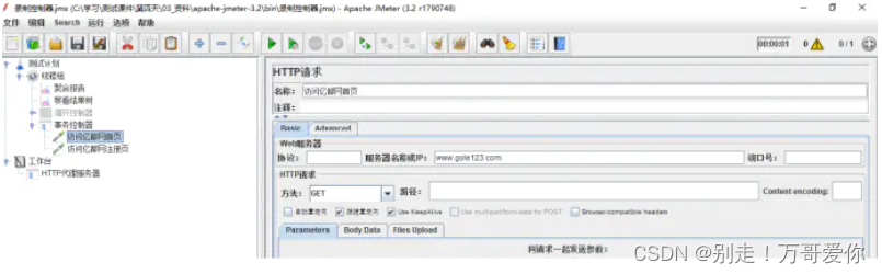 将下载Jmeter文件解压,打开/bin/jmeter.bat