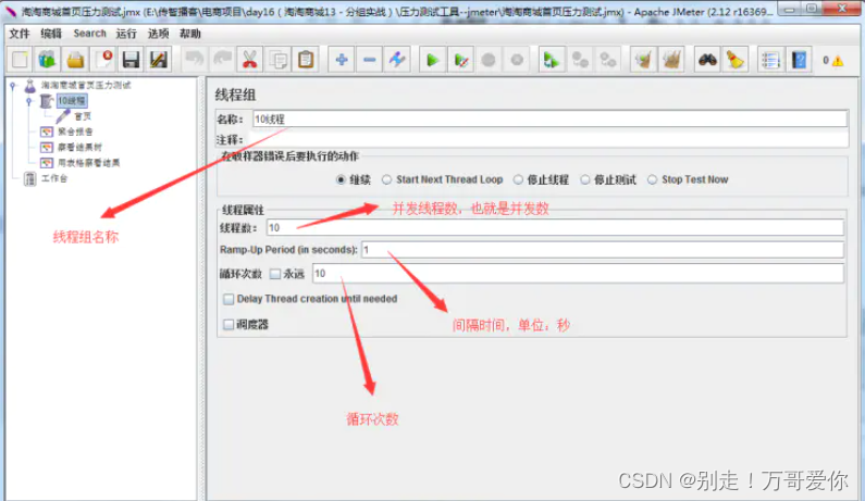Stop thread on EOF:Recycle on EOF设置为False,Stop thread on EOF设置为True,则读取数据文件最后一行后,停止测试,不管还有多少线程组未执行。