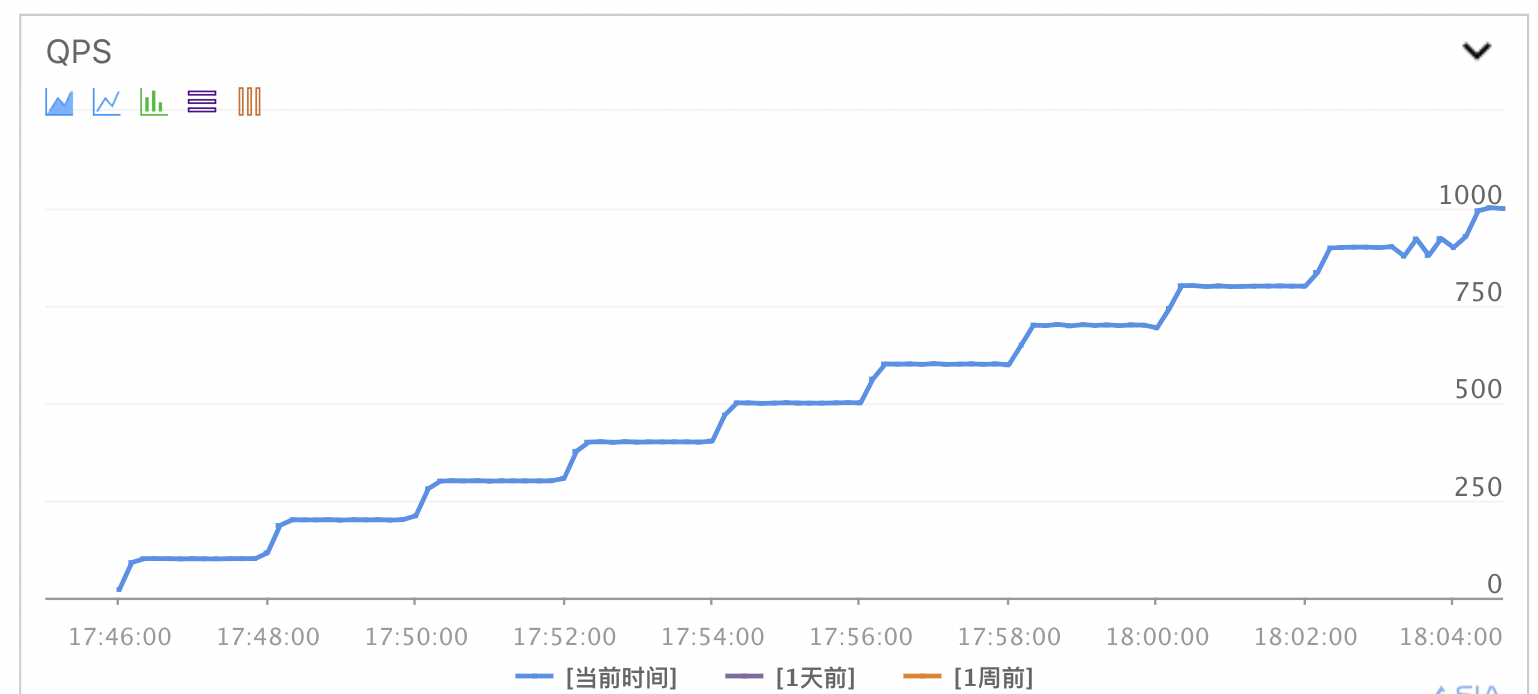 在执行性能测试时,若某个接口需要压1000 QPS。我们不会让它立马上涨到 1000,而是设置100 QPS为初始值,增长的步长也为100。因为我们一般是直接对线上环境的接口进行压测,这样做能保证线上服务不受影响,否则一下子提到很高的QPS,服务器可能会压崩溃
