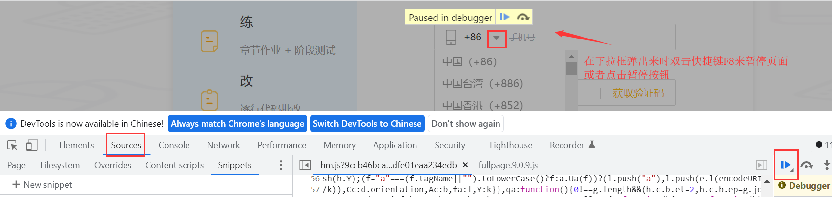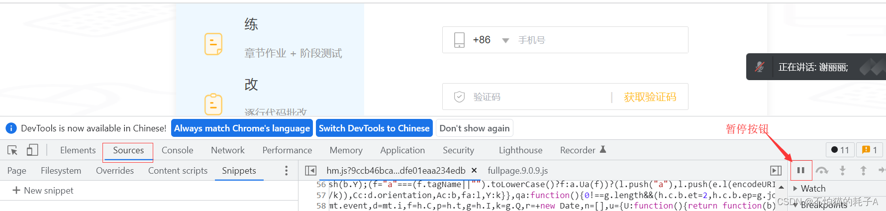 3、Chrome其实就有一个功能我们可以用用:在F12开发者工具中,Sources选项中有一个暂停按钮