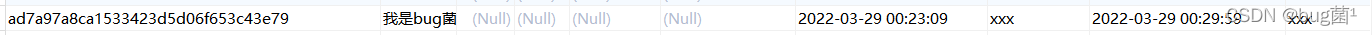 Parameters: xxx(String), 我是bug菌No.1(String), 2022-03-29 00:29:59.889(Timestamp), ad7a97a8ca1533423d5d06f653c43e79(String)